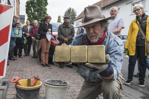 CRUMSTADT. Eine Erklärung, was der Künstler Gunter Demnig da auf den Knien macht, ist vielerorts nicht mehr nötig. Längst haben sich die sogenannten „Stolpersteine“, die an die Opfer des Nationalsozialismus erinnern und mittlerweile über 61 000 Mal in 21 Ländern in die Bürgersteige eingelassen wurden, einen Namen gemacht.