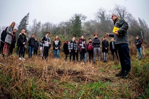 Einen Vorgeschmack, wie der neue Bürgerpark einmal genutzt werden könnte, bekamen die Schüler in der letzten Woche vor den Ferien. Dort warteten der stellvertretende Vorsitzende der Bürgerstiftung, Kurt Vettel, und Historiker Hermann Müller, um den Klassen ein Teil Heppenheimer Vergangenheit zu zeigen - und Joshua durfte endlich mal das Gelände, das 80 Jahre brach gelegen hatte, betreten.