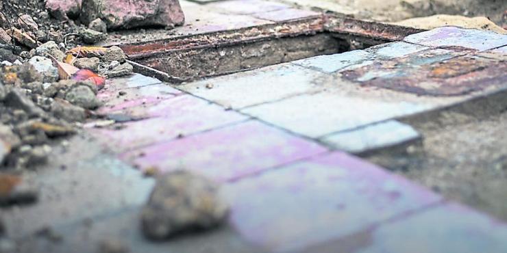 HEPPENHEIM. Sie sind grau und teilweise rötlich und etwa doppelt so lang wie breit. Unscheinbar sehen die Fliesen des alten Fußbodens der 1938 von den Nazis zerstörten Heppenheimer Synagoge aus. Doch die Entdeckung auf dem Grundstück am Starkenburgweg ist eine kleine Sensation. „Den hat seit fast 80 Jahren niemand mehr gesehen“, sagt Dr. Hermann Müller, Vorstandsmitglied der Bürgerstiftung Heppenheim.